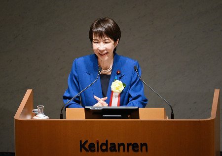 高市早苗首相は25日、都内で開かれた経団連の審議員会であいさつし、2026年春闘に向けて「物価上昇に負けないベースアップの実現をお願いする」と求めた。その上で「賃上げを事業者に丸投げしない」と表明。 【時事通信社】