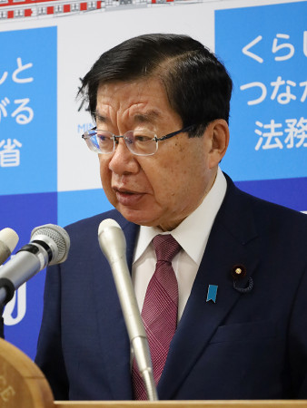 平口洋法相は20日の記者会見で、結婚に伴い改姓した人が旧姓を公的証明書などに単独記載できる「旧姓の単記」について、検討を進める方針を表明した=法務省 【時事通信社】