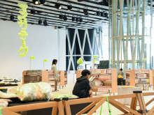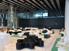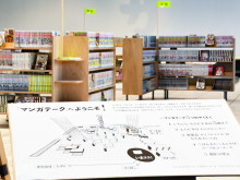 会場中央の書架に、仙台や東北にゆかりのある漫画や学習に関連する漫画も含め、新旧の有名作品、人気作品を8000冊用意。空間デザインは仙台を拠点に活動する「建築ダウナーズ」が手がけ、仙台市内の印刷会社から提供された古紙を再利用したクッションや、椅子、ベンチなどを配置し、思い思いに過ごせる空間に仕上げた。100人ほどを収容する。
