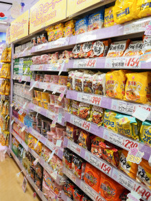 売り場面積は200.5平方メートル。ドン・キホーテらしい圧縮陳列や手書きポップが目を引く店内に、若者のトレンドや流行をリサーチしてセレクトした商品を並べる。コスメ、カラーコンタクト、食品、雑貨、日用消耗品、おもちゃ、家電製品、衣料品、スマホパーツなど約1万5000点を取りそろえる。ファミリー層が多い長町エリアの立地を踏まえ、キャラクターソックスやシールも充実させた。