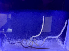 通常の展示のほか、期間中は2階「世界のうみ アジアゾーン」チンアナゴ水槽内に砂底を透明の吸水性ポリマーにした「透明ビーズ水槽」を設置。同館魚類チームの角張博聡さんは「ゆらゆら揺れているチンアナゴだが、実は水流によって流れてくる小さな餌を待っている。その間、気になった隣のチンアナゴにちょっかいを出したり、威嚇してみたり、口を開けてけんかしてみたりする様子が観察できる。そういった行動も魅力の一つなので、遊びに来て水槽を眺めてもらえたら」と話す。