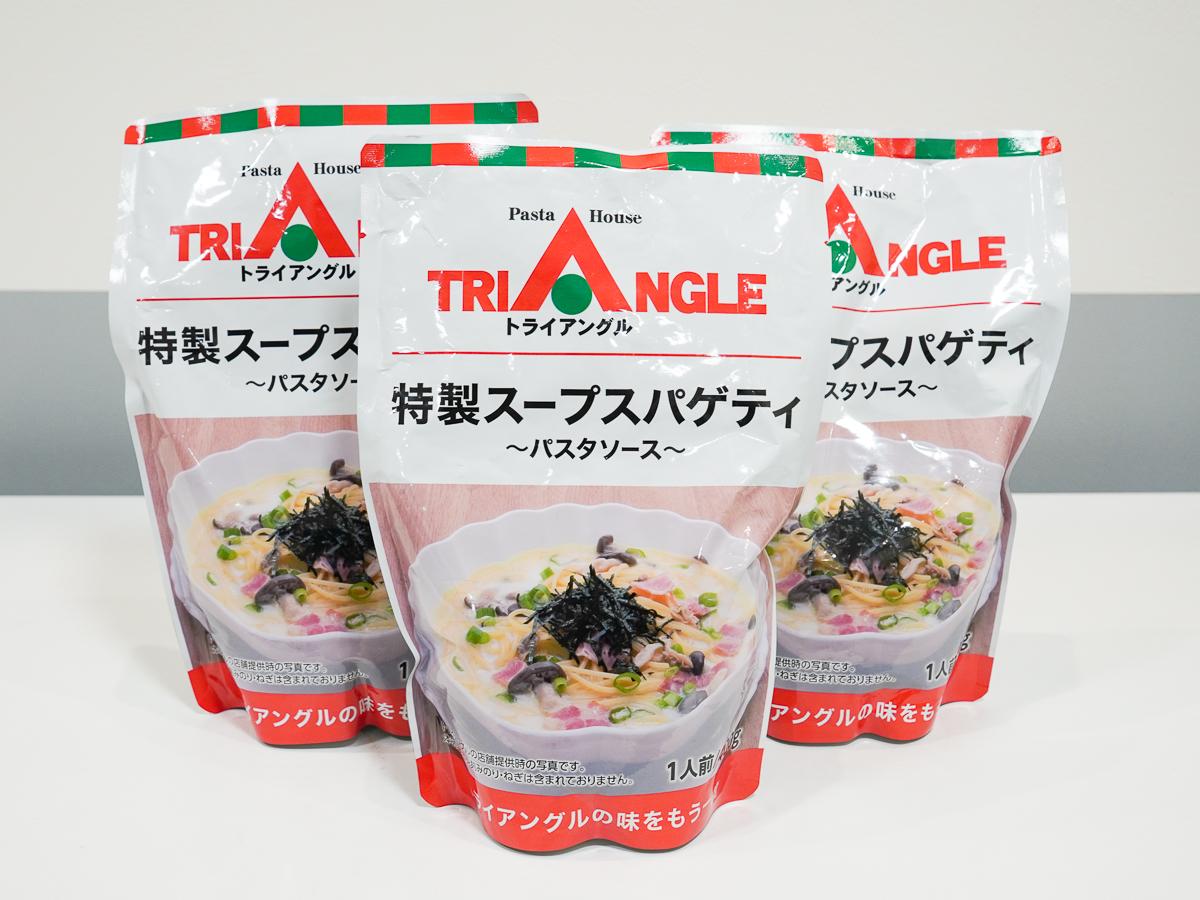 JR東日本東北総合サービス(仙台市青葉区中央4)が12月19日、「パスタハウス トライアングル」の人気メニューの味を再現したレトルト商品「特製スープスパゲティ ~パスタソース~」の販売を始める。