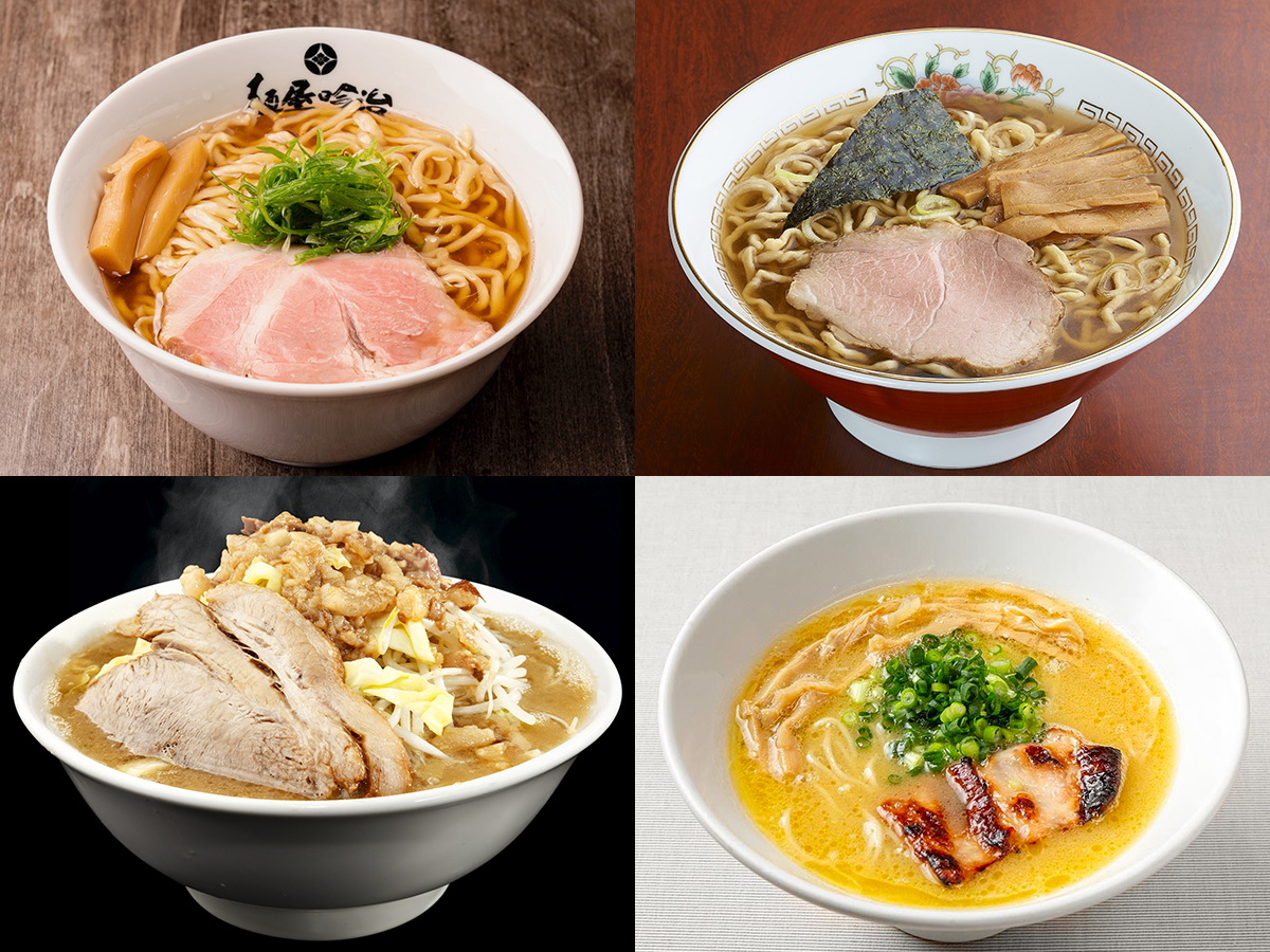 (左上から時計回りで)「麺屋吟治」「荻窪中華そば春木屋」「鶏ポタラーメンTHANK」「俺の生きる道」。第1幕に出店する(写真提供=東日本放送)