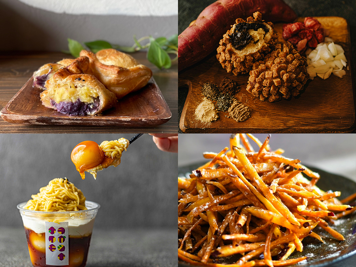 「パイ専門店 pie,guruguru」「淡路島金賞カレーパンサンハート」「IMOKURIEMON」「お芋スイーツ専門店 フランダースフリッツ」のサツマイモスイーツ