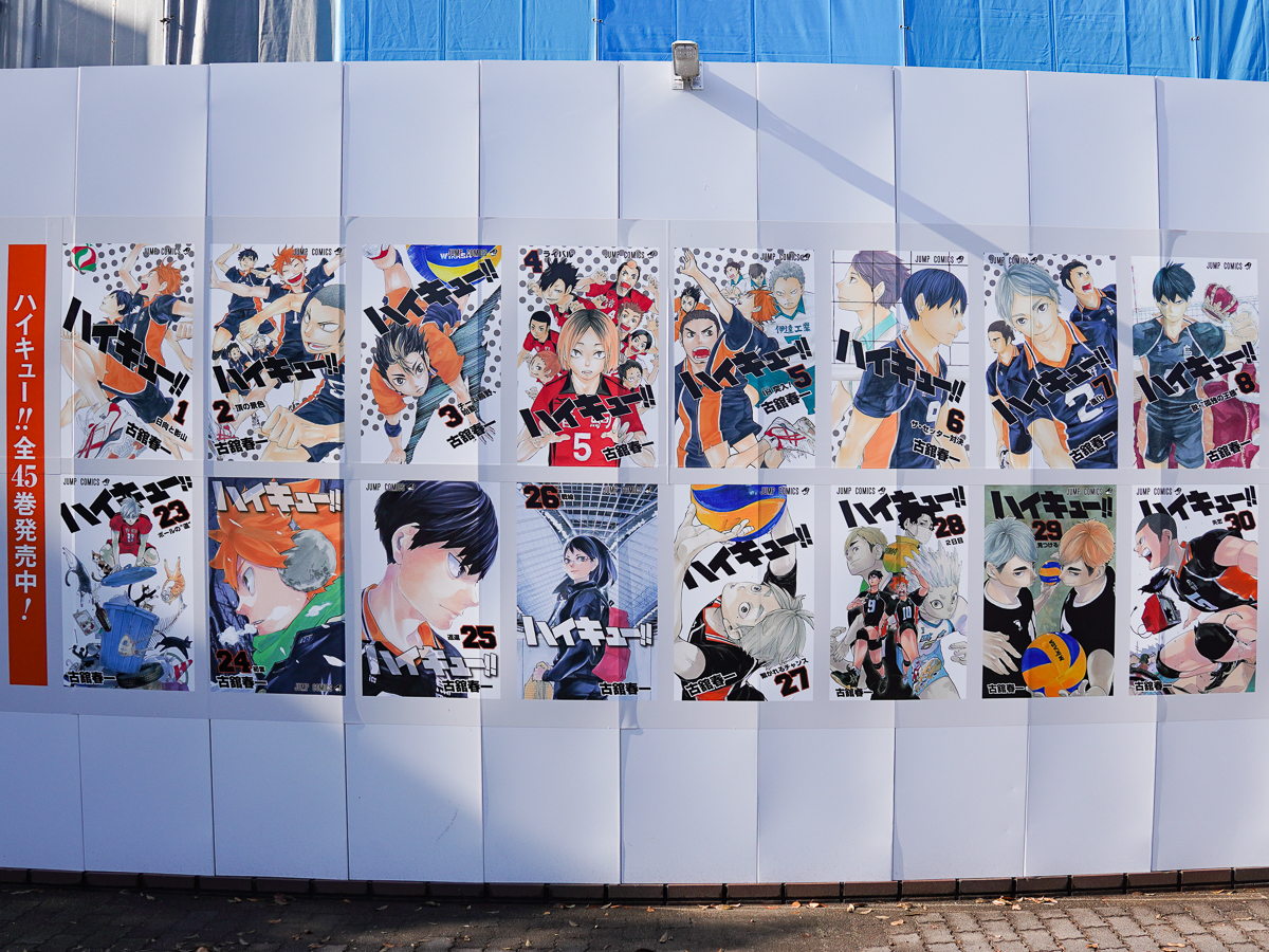 大規模改修工事中の「仙台市体育館(カメイアリーナ仙台)」(仙台市太白区富沢1)東側仮囲いに現在、仙台ゆかりのスポーツ漫画「ハイキュー!!」のイラストが掲出されている。