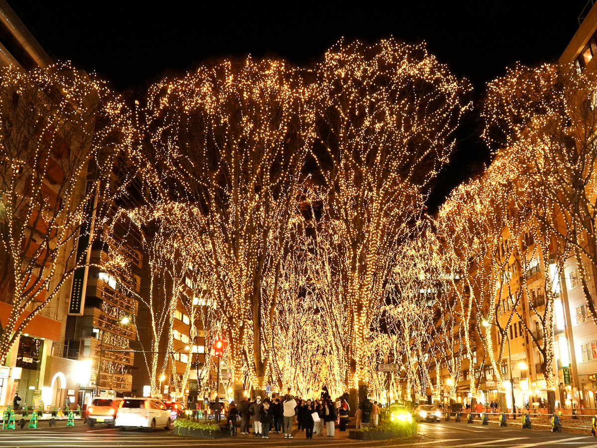 温かみのある「仙台カラー」のLED48万球で彩られた定禅寺通のケヤキ並木