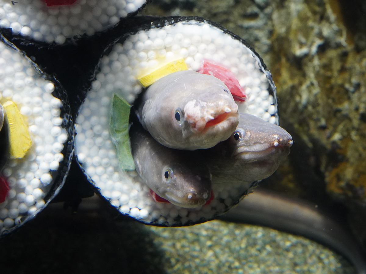 節分にちなんだ「アナゴの恵方巻き水槽」展示が1月17日、仙台うみの杜(もり)水族館(仙台市宮城野区中野4、TEL 022-355-2222)で始まった。