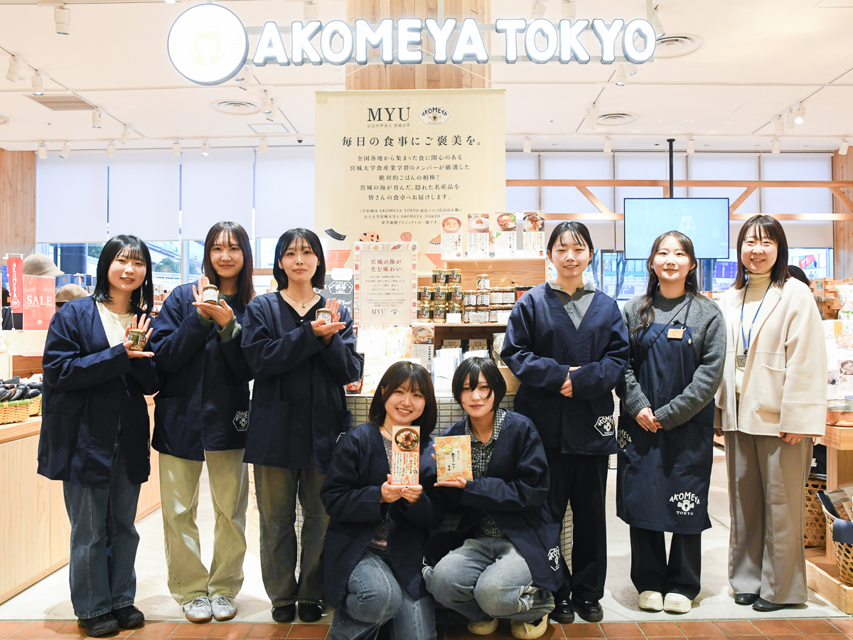 仙台パルコ本館(仙台市青葉区中央1)1階のライフスタイルショップ「AKOMEYA TOKYO(アコメヤ トウキョウ)」で1月30日、宮城大で食産業を学ぶ学生が自分たちで選んだ県内事業者の商品を販売した。
