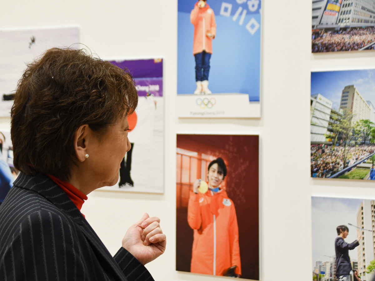 仙台市出身のプロスケーターで五輪2連覇を果たした羽生結弦さんの写真や衣装、ゆかりの品を展示する「羽生結弦と仙台市展-復興とその先の未来へ-」が3月4日、仙台市地下鉄国際センター駅2階「青葉の風テラス」(仙台市青葉区青葉山)で始まった。