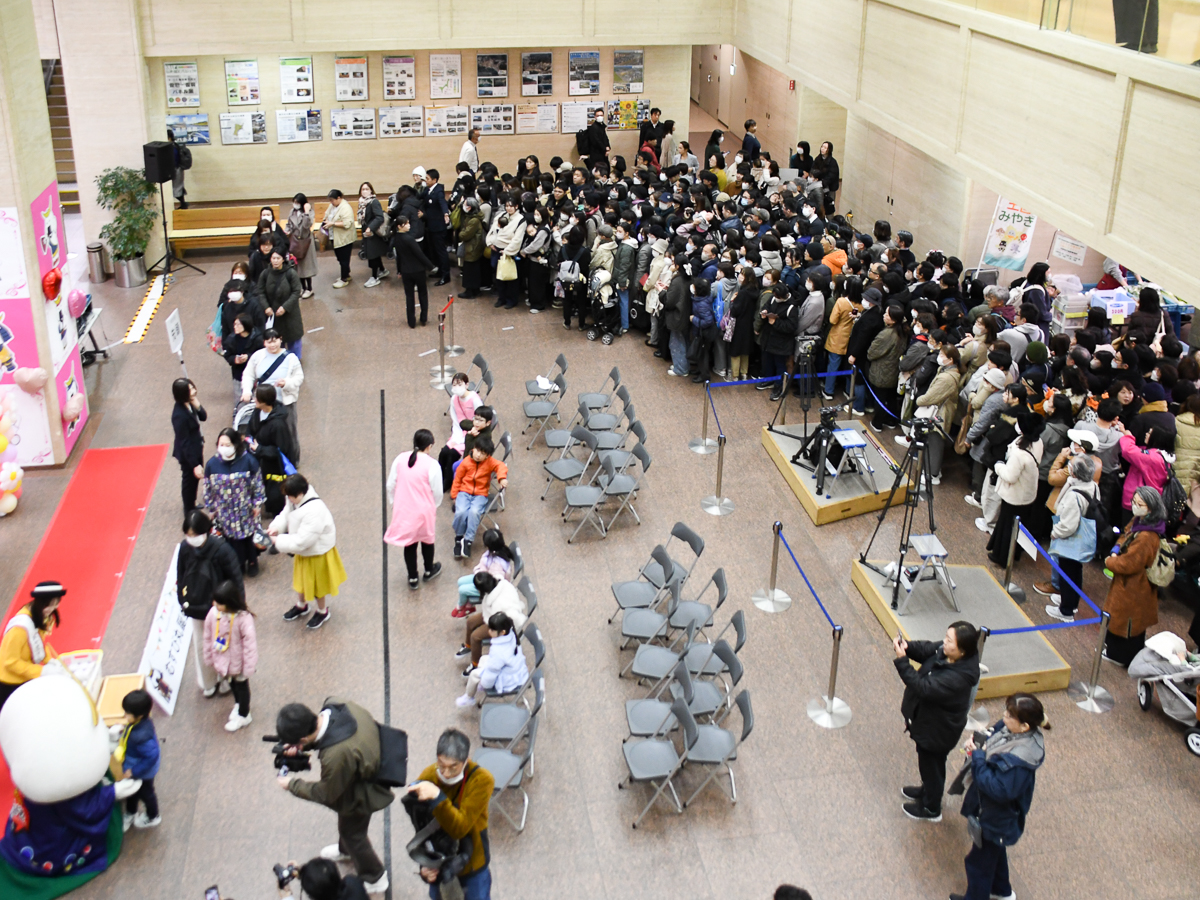 むすび丸の誕生日プレゼントお裾分けに大行列ができた