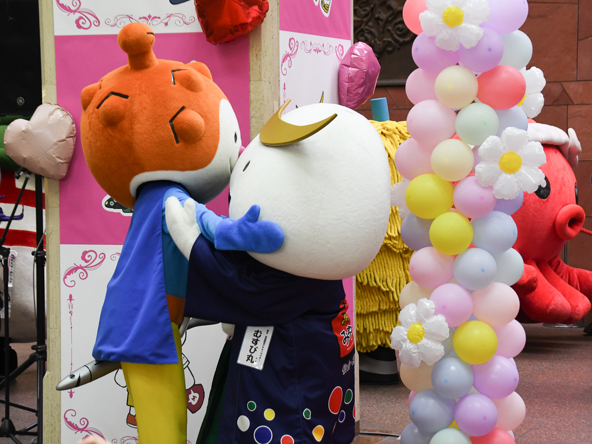 仙台・宮城観光PRキャラクター「むすび丸」の誕生日会が3月9日、宮城県庁1階県民ロビーで開かれ、併せて公式ファンクラブ設立が発表された。