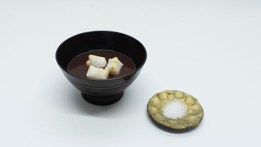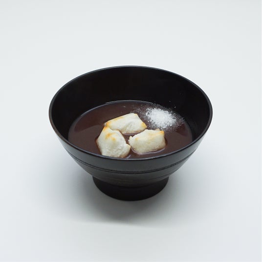 玉澤謹製のこし餡をもちいたお汁粉に焼餅を添えました。「霜塩」を添えてお召し上がりいただくことで甘味の輪郭が立ち、小豆の風味と奥行きのある味わいをお楽しみいただけます。玉澤のこし餡が持つなめらかな口あたりと上品な甘さと共に、お汁粉の喉ごし(のどごし)をあわせてお楽しみください。
