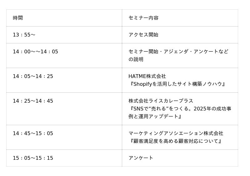 マーケティングアソシエーション株式会社の子会社であるHATME株式会社(本社:東京都台東区 代表取締役:中園広和、以下当社)は2025年12月3日(水)に、株式会社ライスカレープラス、マーケティングアソシエーション株式会と、3社共催ウェブセミナー「“一度きりの購入”で終わらせない!サイト構築×SNS×顧客対応で叶える持続的LTV向上戦略」を、開催いたします。