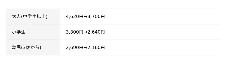 入場料金:20%割引