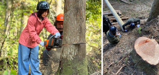 自宅に使用する木材の伐採体験「伐採式」を実施し、地域と家づくりの関わりを体験する機会を提供