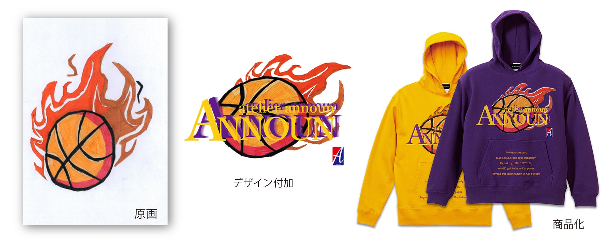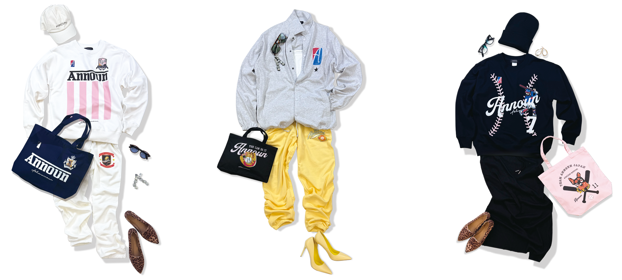 “TEAM ANNOUN”をテーマに、スポーツチームをモチーフにした原画を「アトリエ・アンノウン」にて制作、日々テーマに沿ってそれぞれアーティストたちがデザインの元となる原画制作に取り組み、数百枚の中から厳選し出来上がった作品になります。バスケットボール、サッカー、野球をイメージした架空のスポーツチーム”TEAM ANNOUN”を表現したコレクションになります。