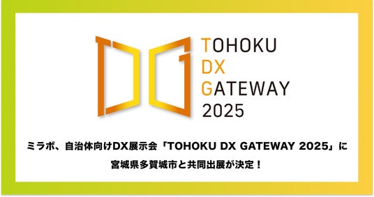自治体向けサービスを開発する株式会社ミラボ(本社:東京都千代田区、代表取締役:谷川一也、以下「ミラボ」)は、2025年11月26日(水)仙台国際センター展示棟(宮城県仙台市)で開催される「TOHOKU DX GATEWAY 2025 [ 自治体向けDX展示会 ]」(主催:仙台市)に宮城県多賀城市と共同出展することをお知らせします。