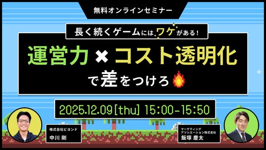 ECサイトの運営代行サービスを提供しているマーケティングアソシエーション株式会社(本社:東京都台東区 代表取締役:中園広和、以下当社)は、2025年12月9日(火)に、マーケティングアソシエーション株式会社主催のウェブセミナー「長く続くゲームにはワケがある!運営力×コスト透明化で差をつけろ」を開催します。