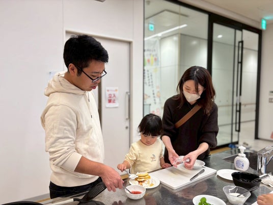 今回は子育てを応援する企業や地元の個人事業主など、23のブースが出展。子育てを応援したいとご協力いただいた15の企業や個人の方々からの協賛で、多数の無料体験ブースやお土産の配布が可能となりました。イベント史上初となる親子料理教室では、ミニパンケーキタワー作りに挑戦し、完成後には家族で和気あいあいと食べている姿も多くありました。スタンプラリーも開催され、縁日ブースやリラクゼーション、フォトブースや育児講座など、親子で様々なブースを回り楽しんでいました。