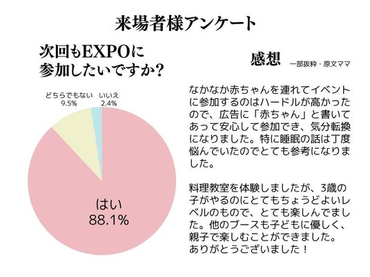 本イベントは、子育てファミリーに楽しみや正しい情報、繋がりを提供することで、社会全体で子育てをする世の中をつくることを目的に、今後も全国各地での開催を検討しております。イベントの共同主催や協賛を受け付けておりますので、ご希望の方は協会ホームページのお問い合わせフォームよりご連絡ください。