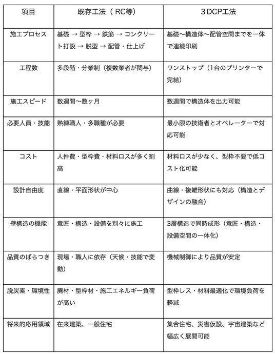 ■技術の特徴と成果(既存3DCPと比較した新規性)
