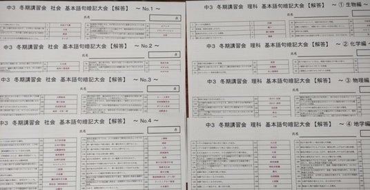 あすなろ学院が厳選した理科200問社会200問の語句をしっかりと勉強してくる。