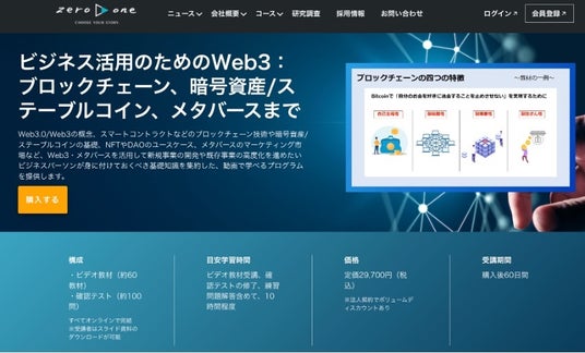 株式会社zero to one(本社:宮城県仙台市、取締役CEO:竹川 隆司、以下「zero to one」)は、野村證券株式会社(以下「野村證券」)と共同開発したオンライン教材「ビジネス活用のためのWeb3:ブロックチェーン、暗号資産/ステーブルコイン、メタバースまで」(以下「本コース」)において、最新の暗号資産・ステーブルコインおよびNFT領域の動向を踏まえ、コンテンツのアップデートを実施いたしました。アップデート後の本コースは、12月8日よりオンライン(クレジットカード決済)、法人契約(個別にお問い合わせください)双方にて、提供を開始いたします。
