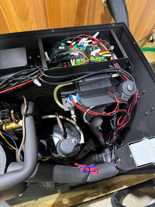 「Hagoromo1」のチラーをメンテナンス=宮城県仙台市福田町の修理工場で