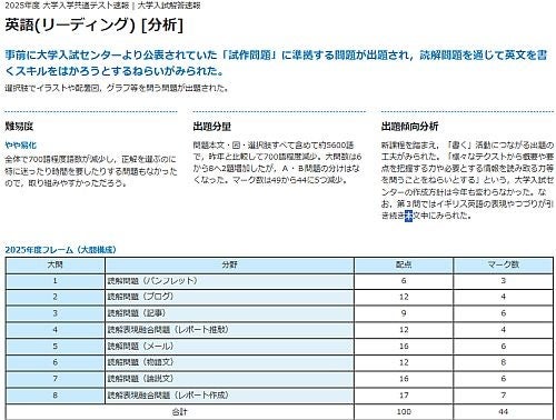 (1)共通テスト当日 分析資料を提供