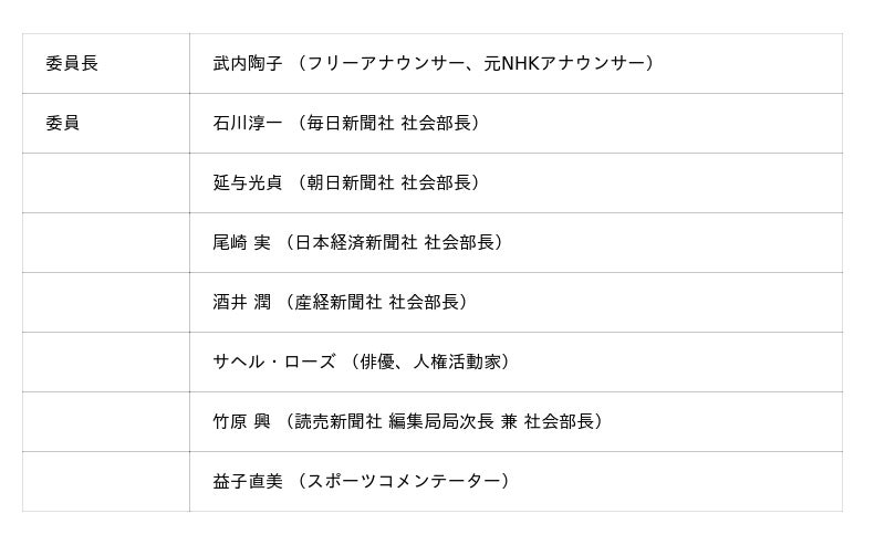 2025年1月から12月までに発行された日刊紙(朝日新聞、毎日新聞、読売新聞、日本経済新聞、産経新聞の東京および大阪本社版、北海道新聞、河北新報、東京新聞、中日新聞、西日本新聞)の記事の中から、シチズン・オブ・ザ・イヤー事務局が候補として19人(グループ)をノミネート。2026年1月5日に開かれた選考委員会で候補者を対象に審議し、決定しました。
