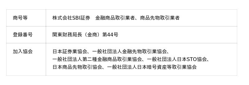 SBI証券で取り扱っている商品等へのご投資には、商品毎に所定の手数料や必要経費等をご負担いただく場合があります。また、各商品等は価格の変動等により損失が生じるおそれがあります(信用取引、先物・オプション取引、商品先物取引、外国為替保証金取引、取引所CFD(くりっく株365)、店頭CFD取引(SBI CFD)では差し入れた保証金・証拠金(元本)を上回る損失が生じるおそれがあります)。各商品等への投資に際してご負担いただく手数料等及びリスクは商品毎に異なりますので、詳細につきましては、SBI証券WEBサイトの当該商品等のページ、金融商品取引法等に係る表示又は契約締結前交付書面等をご確認ください。