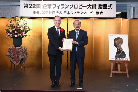 本プロジェクトは「第22回 企業フィランソロピー大賞」にて「ふるさとの人づくり賞」を受賞し、2025年2月28日(金)の贈呈式にて、当社代表取締役社長 鈴木整が取り組みについてプレゼンテーションを行い、公益社団法人日本フィランソロピー協会 会長の浅野史郎氏から表彰状を授与されました。