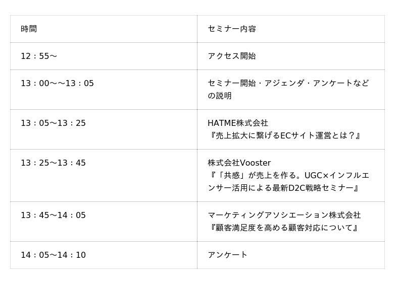 マーケティングアソシエーション株式会社の子会社であるHATME株式会社(本社:東京都台東区 代表取締役:中園広和、以下当社)は2026年3月3日(火)に、株式会社Vooster、マーケティングアソシエーション株式会社と、3社共催ウェブセミナー「売上につながるECは、集客から“その先”が違う!成果を生み出すEC戦略とは?~インフルエンサーマーケティング × 売上拡大 × 顧客対応~」を、開催いたします。
