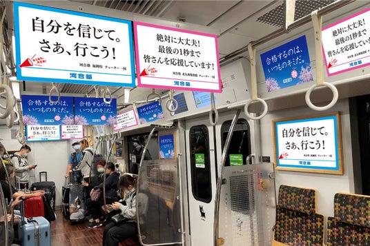 そこで、河合塾は各地の試験会場へ向かう駅や電車内に励ましのメッセージを多数掲出し、夢に挑む受験生を応援します。応援メッセージは、この1年間、受験生を見つめ、サポートしてきた河合塾のスタッフと講師が、最後に試験会場で生徒一人ひとりに かける一言をイメージして作成しました。河合塾のスタッフが思いを込めて作成したメッセージが、受験生やご家族へのエールとして届けば幸いです。