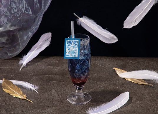 劇場版『名探偵コナン ハイウェイの堕天使』のティザービジュアルをイメージした、カシス&パイン風味のバタフライピーティー。