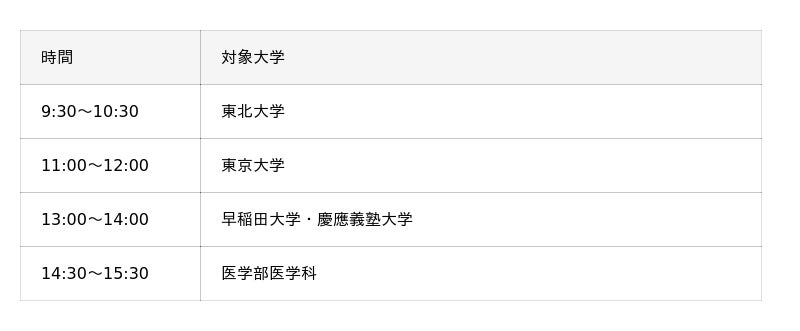 12日(日)に大学別のセミナーを開催します。
