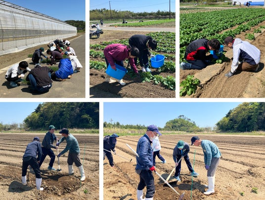 当社は2017年より、宮城県東松島市の農産物栽培拠点「幸満つる 野蒜農園(さちみつる のびるのうえん)」にて、新入社員を対象に宿泊での農業体験研修を実施しています。