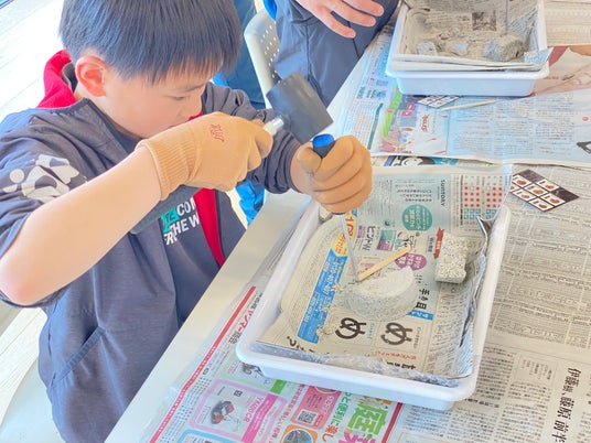 1.ざくざく発掘体験化石ブロックを好きなだけ削り、隠された化石や鉱石を掘り出す体験です。見つかった化石・鉱石は全てお持ち帰り可能!